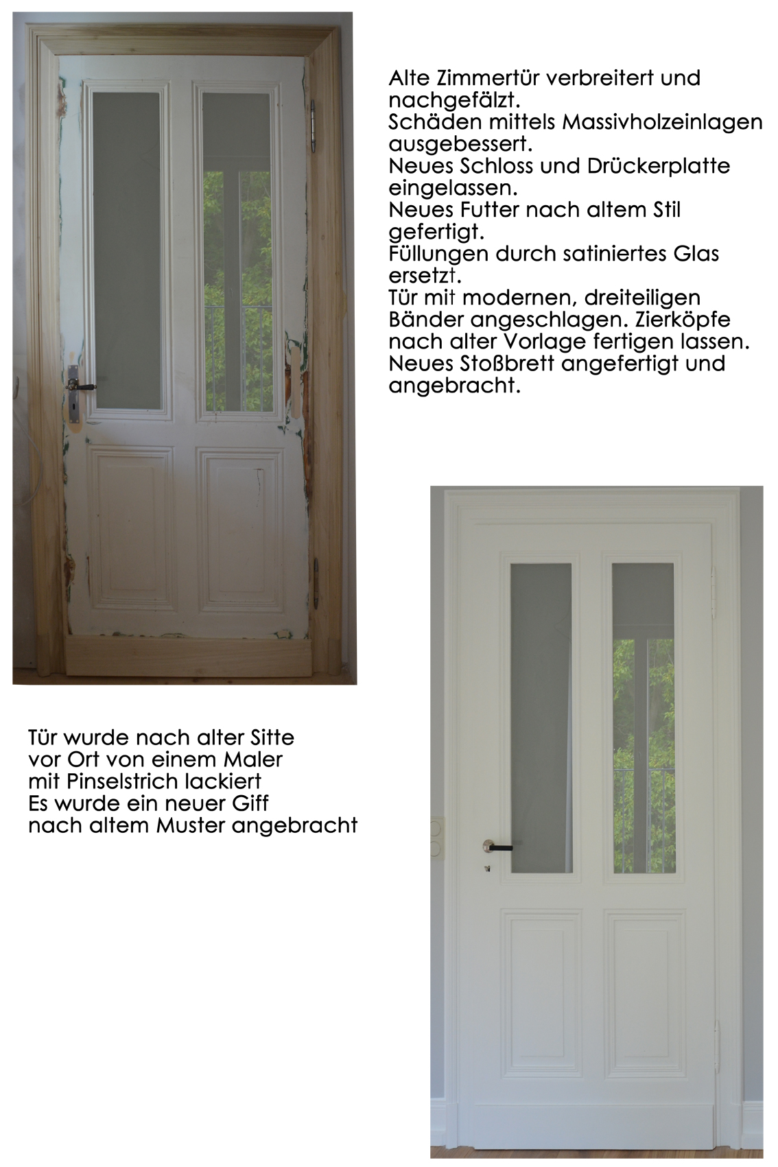 verschiedene Holzarbeiten ausgeführt, später fertig gebeizt und lackiert