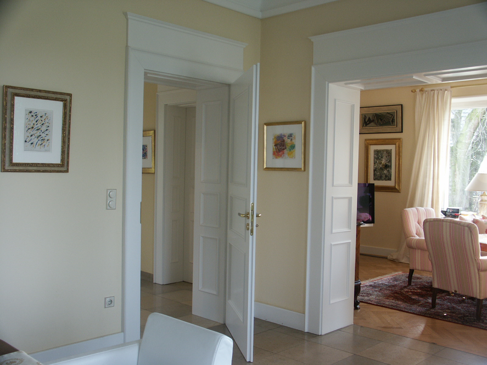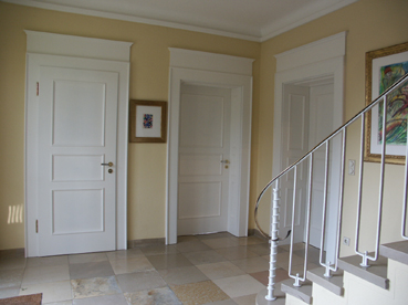 Tür und Futter mit Rahmen und Füllungen in Weißlack |
