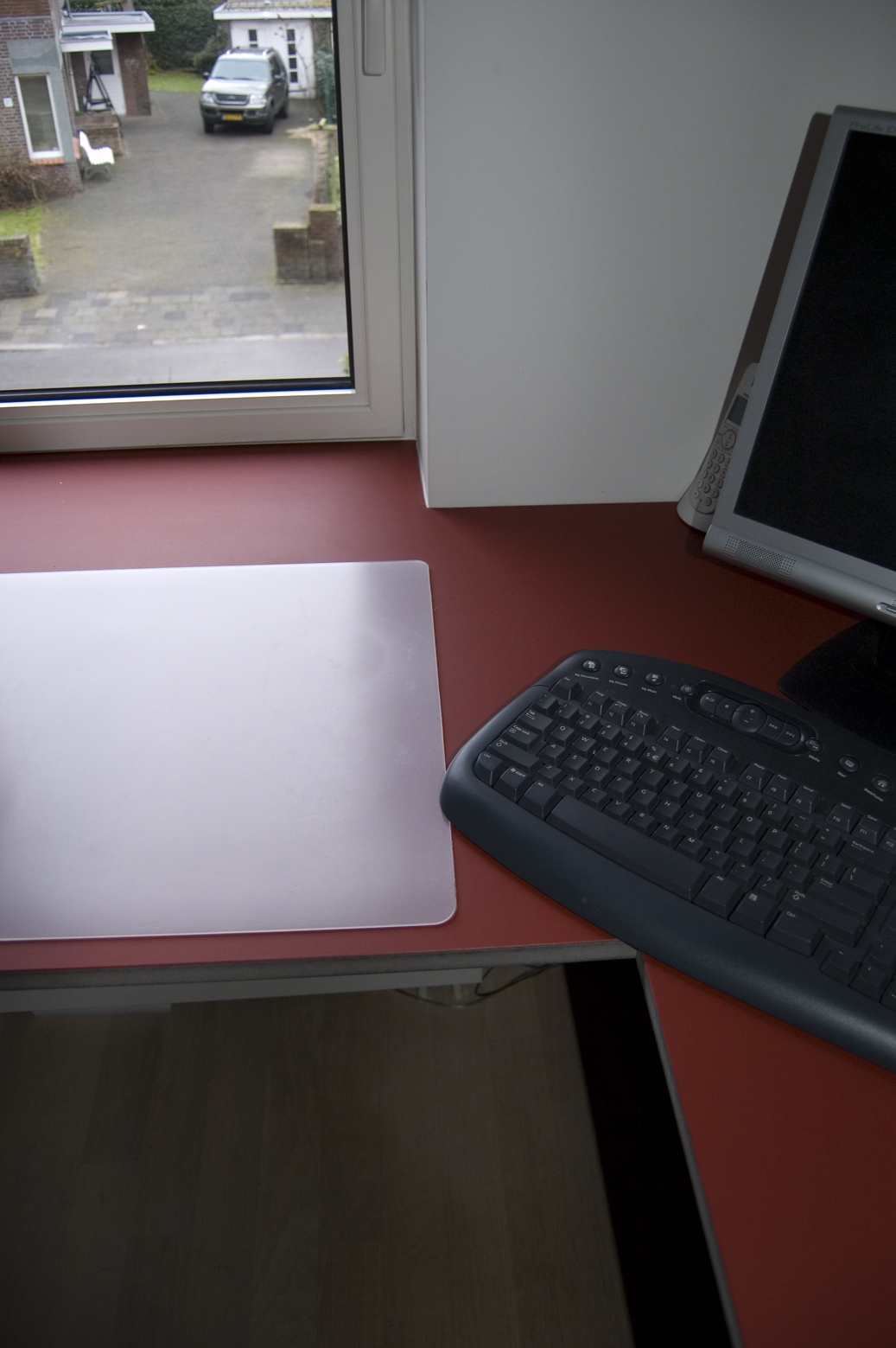 Arbeitsfläche mit Linoleum belegt, passgenau in Fensterlaibung montiert |